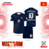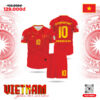 Màu đỏ tươi chủ đạo không chỉ tượng trưng cho đam mê và nhiệt huyết của các tuyển thủ, mà còn là sắc màu của lá cờ Tổ quốc – thể hiện tinh thần bất khuất và ý chí chiến đấu mạnh mẽ. Các chi tiết màu vàng nổi bật như số áo, tên cầu thủ và ngôi sao vàng được thiết kế khéo léo, không chỉ làm tăng tính thẩm mỹ mà còn nâng tầm giá trị nhận diện đội tuyển Việt Nam trên sân cỏ quốc tế.