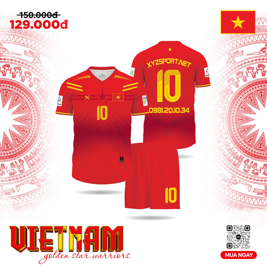 Khoác lên mình chiếc áo Đỏ tươi rực rỡ – biểu tượng cho niềm tự hào dân tộc Việt, với họa tiết trống đồng Đông Sơn truyền thống, áo bóng đá đội tuyển Việt Nam không chỉ là sản phẩm thể thao mà còn là lời tuyên ngôn về lòng yêu nước.