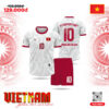 Đặc biệt, lá cờ đỏ sao vàng được đặt trang trọng trên ngực trái – đại diện cho niềm tự hào dân tộc luôn hiện diện trong mỗi người con đất Việt khi thi đấu hay luyện tập.