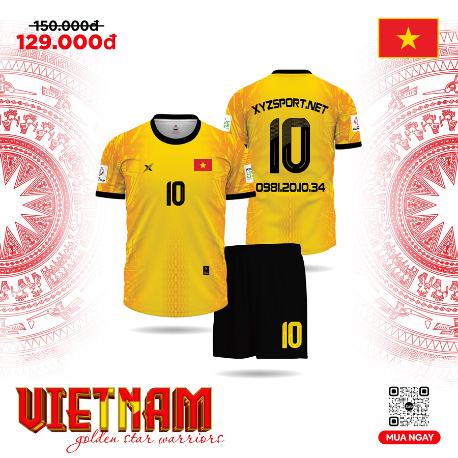 Áo bóng đá vàng đen – Sự kết hợp hoàn hảo giữa phong cách thể thao hiện đại và tinh thần dân tộc Việt Nam. Màu sắc nổi bật, chất vải cao cấp và thiết kế chuyên nghiệp giúp bạn tự tin tỏa sáng trên sân cỏ.