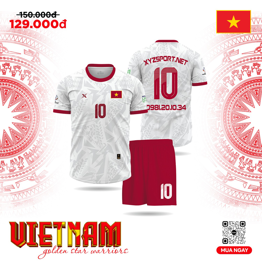 Áo Đấu Đội Tuyển Việt Nam Màu Trắng Họa Tiết Xám – Tinh Tế Và Máu Lửa