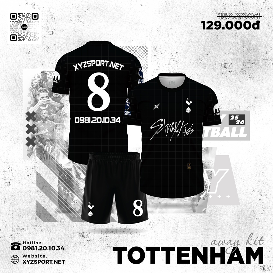 Áo Tottenham Away 2025/26 – Màu đen cá tính