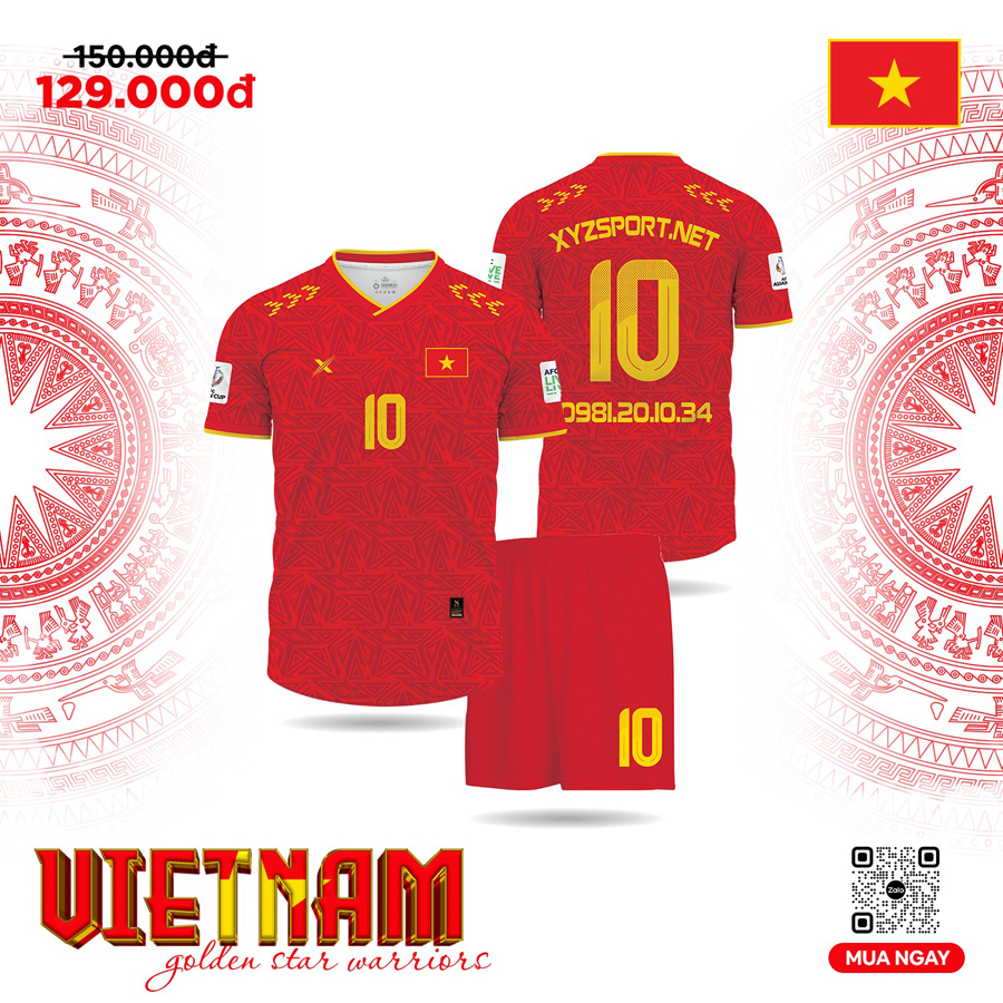 Hãy khoác lên mình màu áo thiêng liêng của đội tuyển quốc gia – vừa thời trang vừa đầy ý nghĩa. Liên hệ XYZSport để đặt hàng nhanh chóng và nhận ưu đãi hấp dẫn ngay hôm nay!