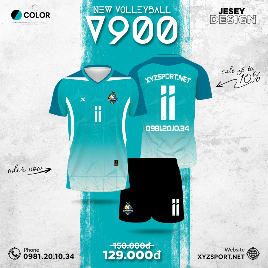 Bộ Quần Áo Bóng Chuyền Nam – Nữ V900 Màu Xanh Ngọc Hiện Đại