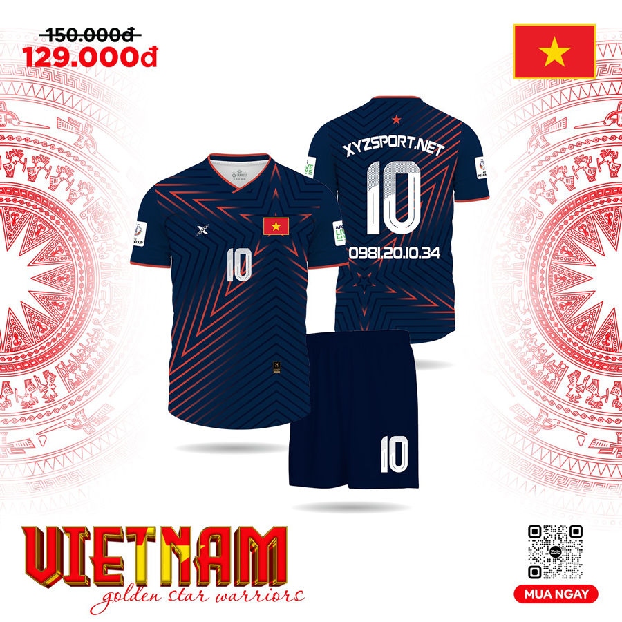 Bộ quần áo bóng đá đội tuyển Việt Nam phiên bản HA PRO XYZ Training 29 với tông màu xanh navy mạnh mẽ, điểm nhấn đỏ cam cá tính và chất liệu thể thao cao cấp, là lựa chọn lý tưởng cho người hâm mộ và vận động viên chuyên nghiệp.