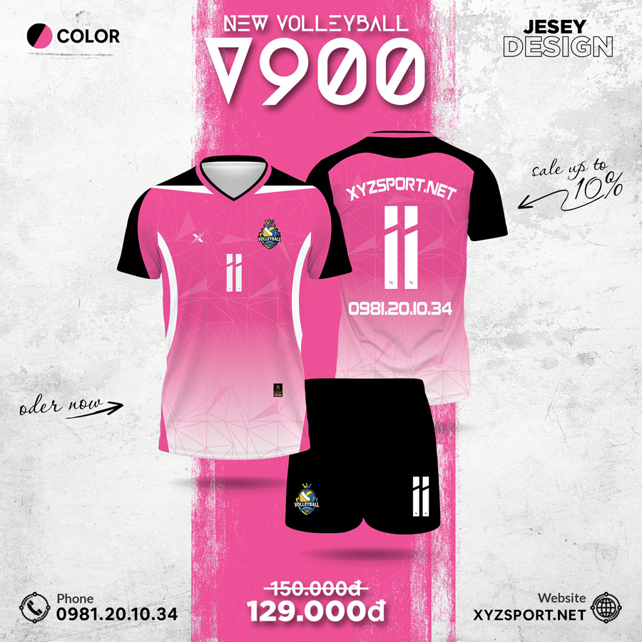 Bộ đồng phục thể thao V900 – nổi bật với sắc hồng đậm trẻ trung, phối màu thời trang, chất liệu thoáng khí chuyên biệt dành cho vận động cường độ cao như bóng chuyền.