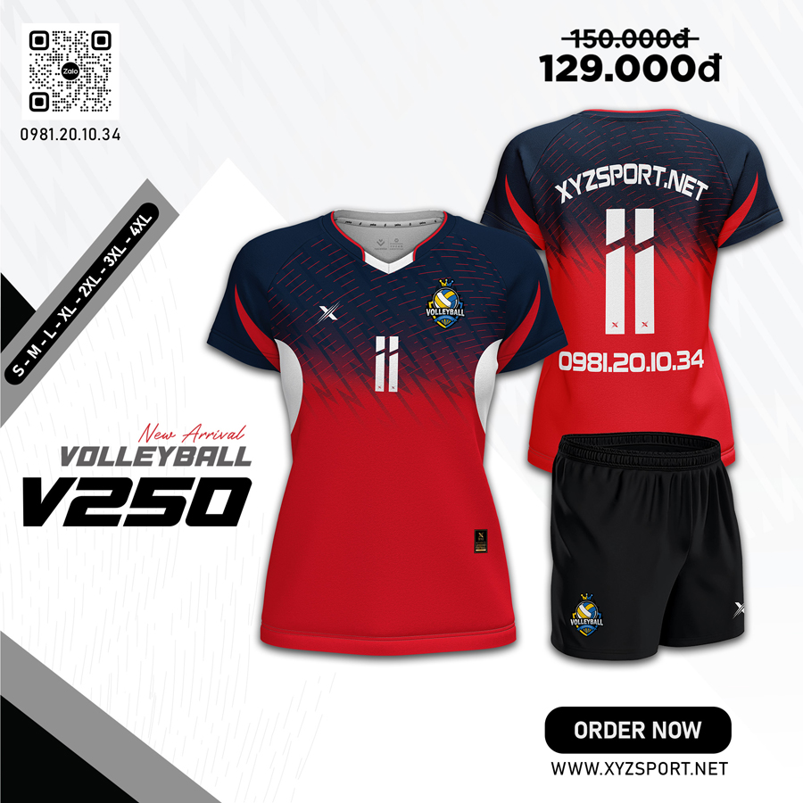 Áo bóng chuyền V250 mang sắc đỏ rực rỡ kết hợp xanh navy và họa tiết gradient đầy phá cách, tạo nên một thiết kế cá tính, chuyên nghiệp và nổi bật trên sân đấu. Lựa chọn lý tưởng dành cho các đội bóng muốn khẳng định phong cách riêng.